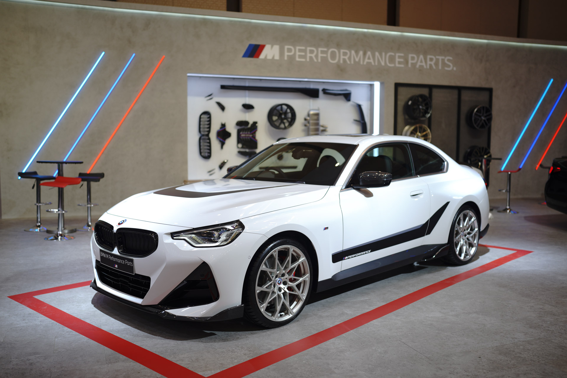 Di ajang GIIAS 2022, diperkenalkan BMW M Performance Parts untuk BMW 220i Coupé M Sport dengan menghadirikan lebih banyak produk individualisasi tampilan serta performa oleh BMW M Performance Parts, seperti terlihat di exterior kendaraan dimulair dari BMW M Performance Parts Kidney Grille yang terbuat dari Carbon Fiber dimana ini dibuat oleh tangan sehingga kesempurnaan kualitas dan juga rajutan carbon fiber tidak akan sama untuk setiap produk, selain grille tentu dilengkapi juga dengan splitter carbon fiber depan serta exterior mirror caps yang terbuat dari Carbon Fiber. Pada bagian belakang dapat terlihat BMW M Performance Rear Spoiler yang juga terbuat dari Carbon Fiber dengan tampilan yang lebih sporty dan tidak melupakan sangat fungsional khususnya pada kecepatan tinggi.
